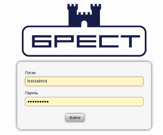 https://FN.brestadmin:29876 (используется для подключения к удаленному рабочему столу ВМ). Открывшуюся страницу с сообщением об ошибке можно закрыть. - Перейти к веб-интерфейсу ПК СВ "Брест" по адресу "
