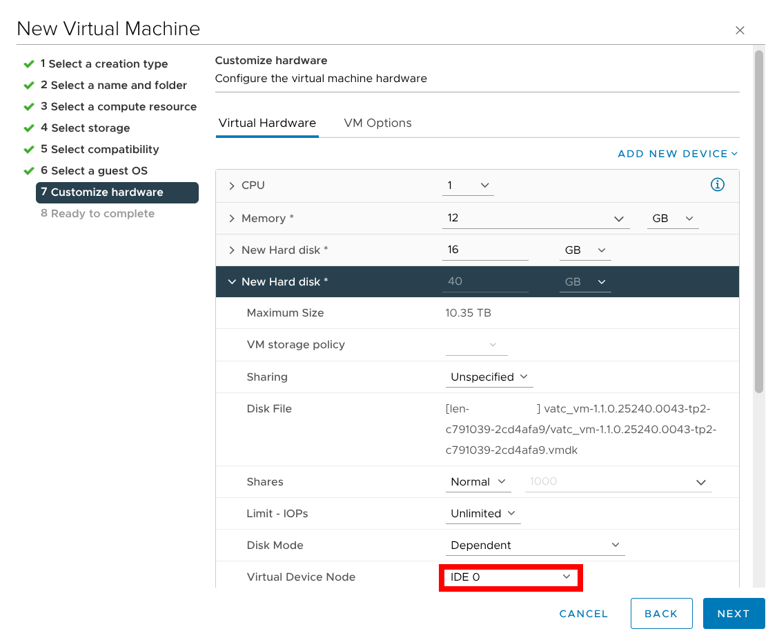 указать для параметра «Virtual Device Node» значение «IDE»;