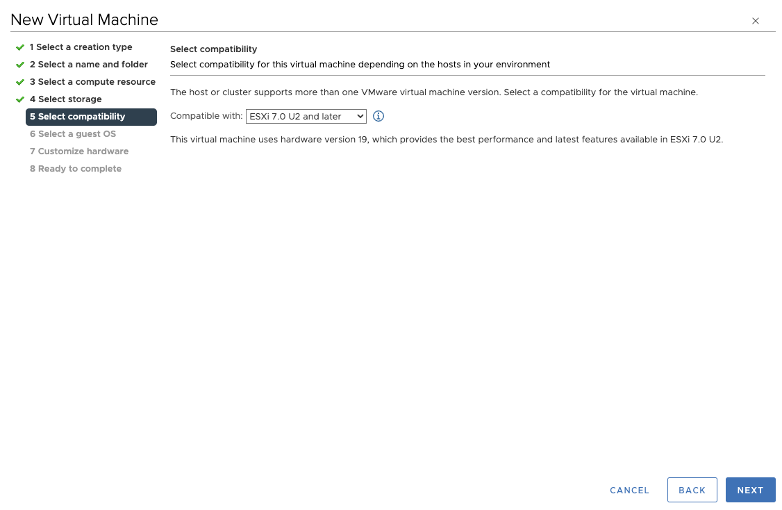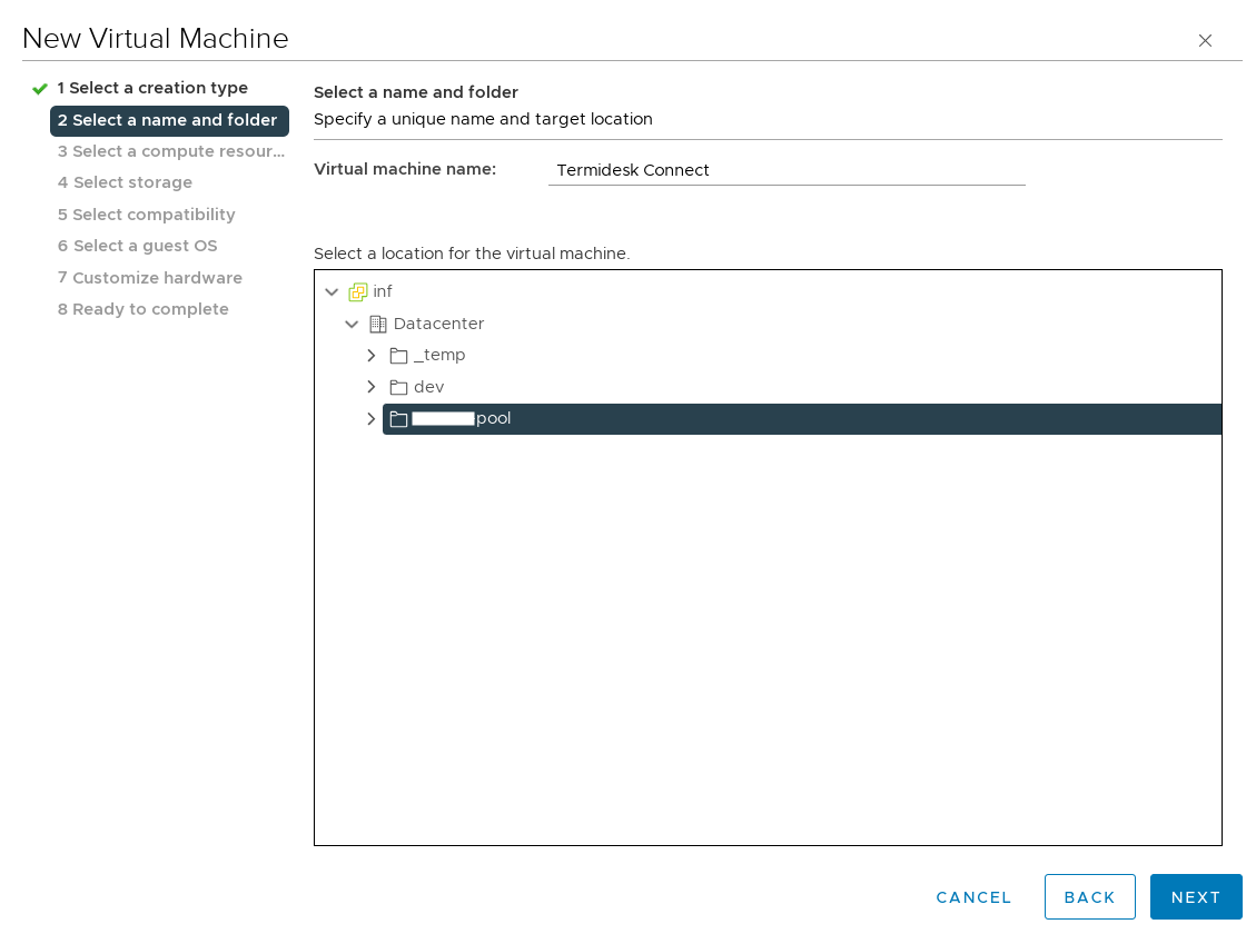выбрать хранилище для размещения ВМ и нажать экранную кнопку [NEXT];