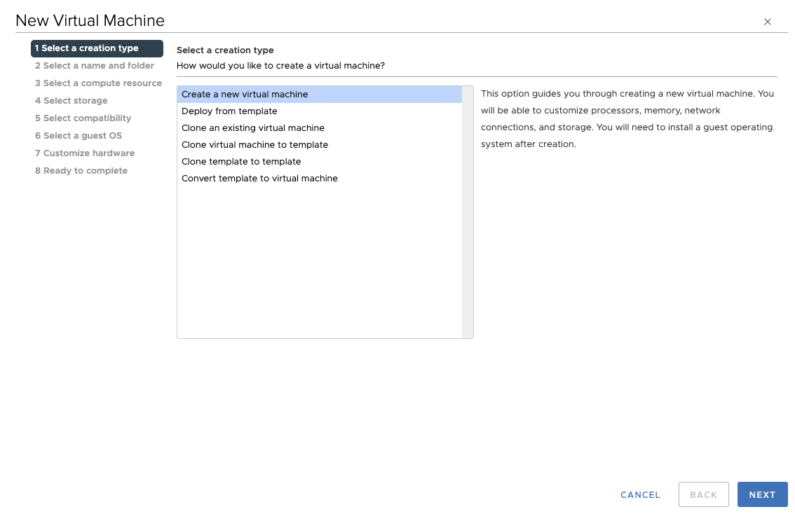 - в мастере создания ВМ выбрать пункт «Create a new virtual machine» и нажать экранную кнопку [NEXT];