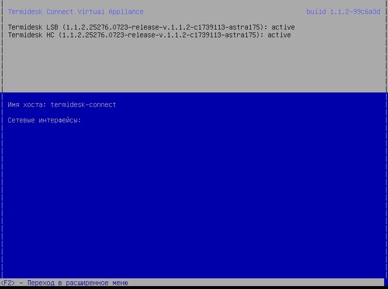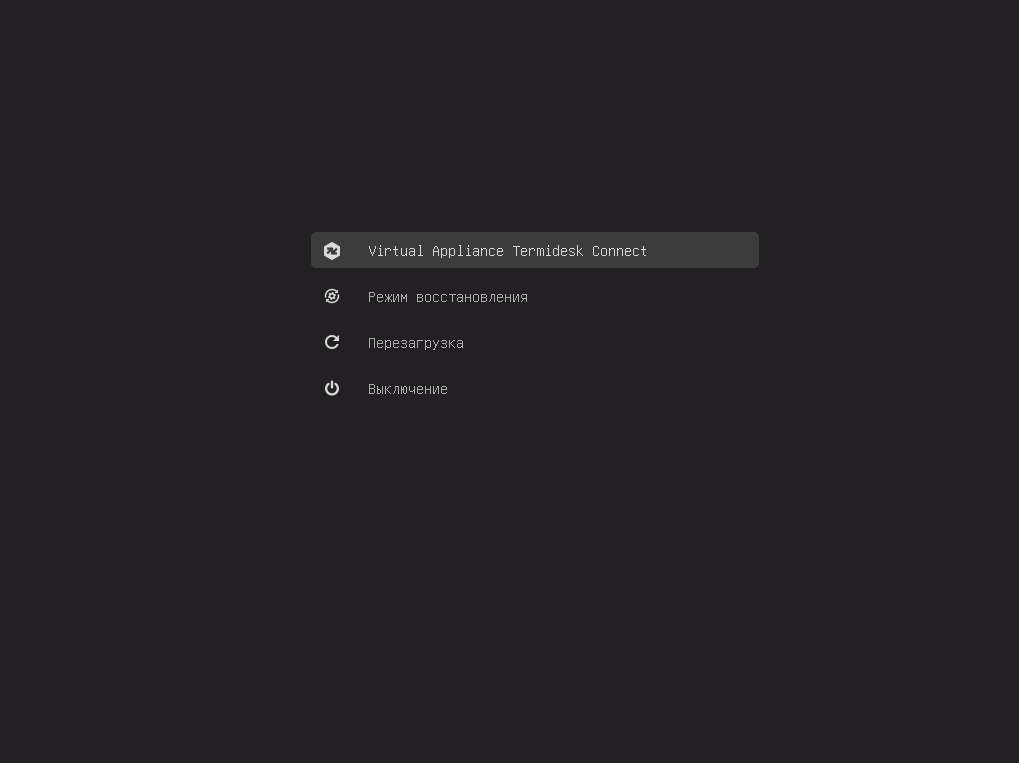 - выбрать в меню пункт «Virtual Appliance Termidesk Connect» и нажать клавишу <ENTER>;