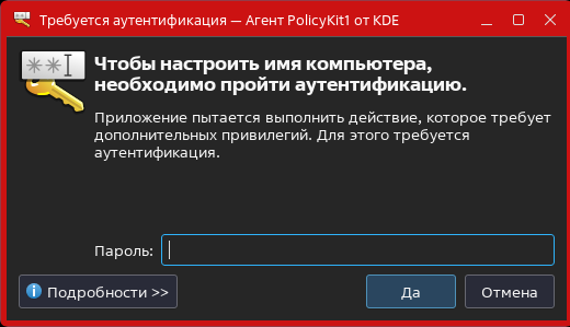 Рисунок 2. Окно агента аутентификации polkit-kde-authentication-agent-1