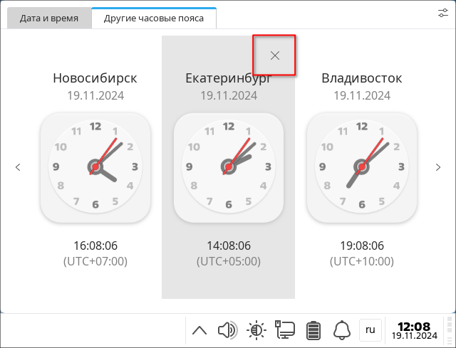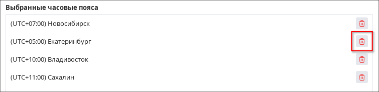 - в окне модуля — во вкладке Другие часовые пояса в соответствующей строке списка Выбранные часовые пояса нажать кнопку удаления и нажать [Применить].