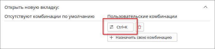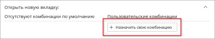 Назначенная комбинация клавиш будет отображена в строке, соответствующей действию.