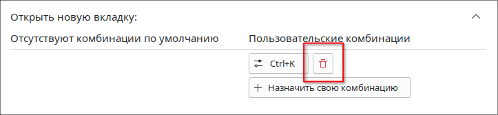 Для отключения комбинации клавиш по умолчанию снять соответствующий флаг. Для включения комбинации клавиш по умолчанию установить флаг.