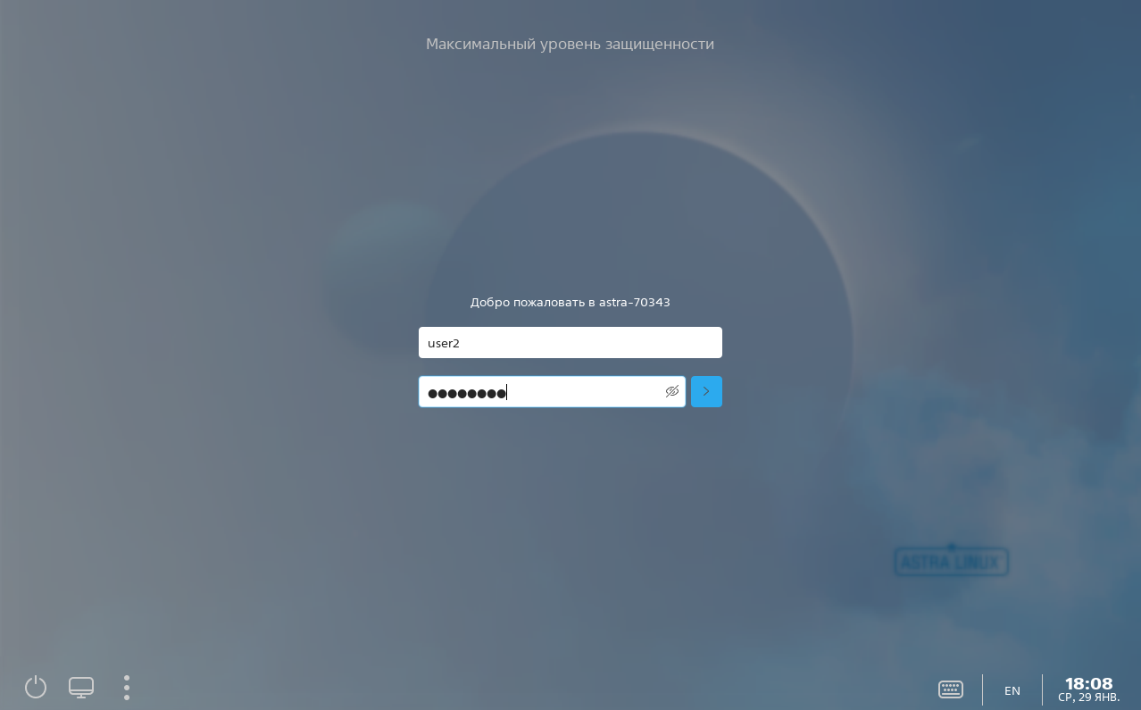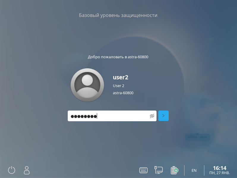 На базовом уровне защищенности («Орел») на экране входа по умолчанию отображается имя учетной записи, с которой был выполнен последний вход в систему.