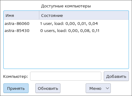 Доступные в сети компьютеры, к которым разрешено удаленное подключение, будут отображены в окне настройки удаленного входа.