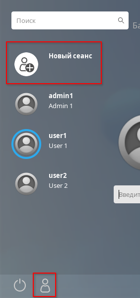 - на экране блокировки текущей сессии нажать [Новая сессия], чтобы перейти на экран входа;