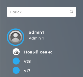 Экран блокировки предоставляет возможность начать новую сессию, не завершая текущую. Переключение между активными сессиями см. Смена сессии («Орел»).