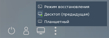 - Режим восстановления — режим, в котором запускается только программа «Терминал». Данный режим может быть использован для отладки системы из терминала, если не запускается графическая сессия.
