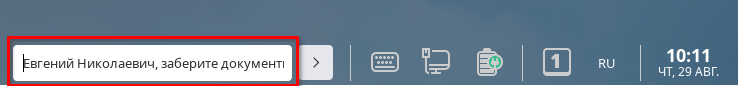 Если пользователь заблокировал сессию и покинул рабочее место, то другой сотрудник может оставить для него сообщение. Для отправки сообщения необходимо на экране блокировки в соответствующем поле ввести текст сообщения, затем нажать [>] или клавишу <Enter>.
