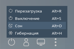 Для перевода системы в режим сна необходимо на экране входа или на экране блокировки нажать комбинацию клавиш <Alt+D> или раскрыть меню Выключение и выбрать Сон.