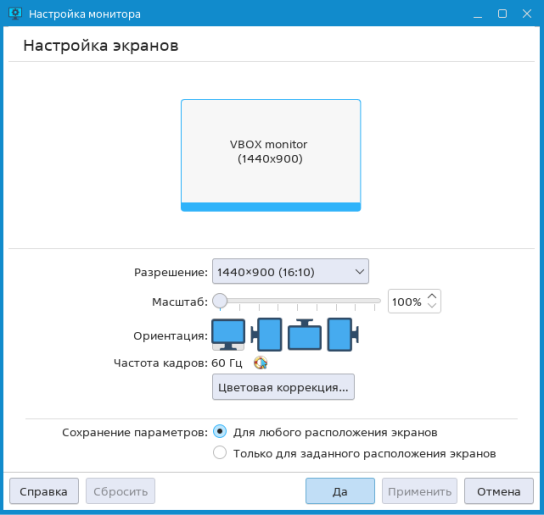 - Только для заданного расположения экранов — сохранить заданные параметры только для текущего расположения экранов (например, если поменять экраны местами, то будут установлены настройки, не зависящие от расположения экранов);