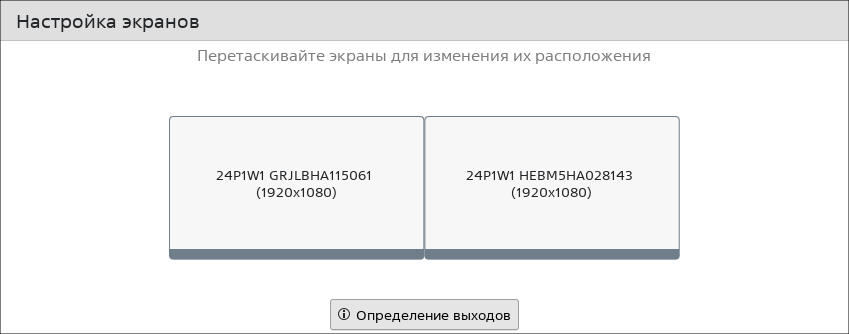 Для определения монитора необходимо нажать кнопку [Определение выходов]. На экране каждого подключенного монитора отобразится его название, а также используемый интерфейс подключения и разрешение экрана.