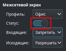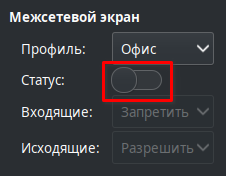 Для выключения межсетевого экрана необходимо установить переключатель Статус в выключенное положение.
