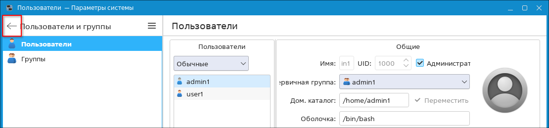 Для перехода в раздел необходимо нажать на соответствующий значок — будет отображена рабочая панель с содержимым раздела. Для возврата к панели со значками необходимо нажать [Все параметры].