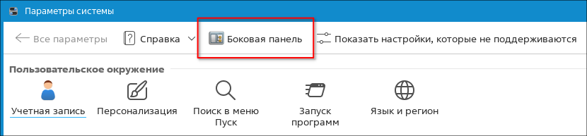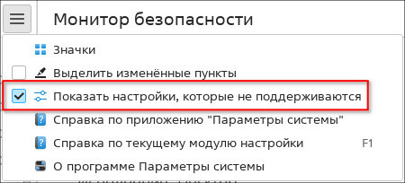 - в режиме «Боковая панель» — в меню программы установить флаг Показать настройки, которые не поддерживаются.