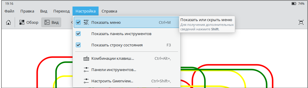 - в меню выбрать Дополнительно — Настройка — Настроить Gwenview;