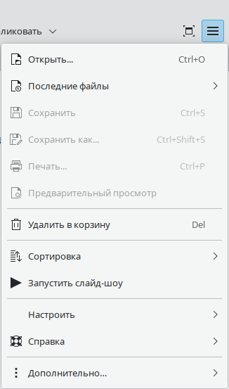 - Переход между изображениями — переход между изображениями в текущей папке;