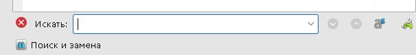 - Справа от строки — кнопки перехода к следующему и к предыдущему вхождению, флаги учета регистра и расширенного поиска и замены;