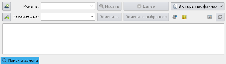 - Кнопка [Поиск и замена] (внизу) включает панель расширенного поиска в файлах;