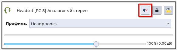 Для отключения звука отдельного устройства воспроизведения (например, наушников) необходимо в соответствующей секции нажать [Выключить звук].