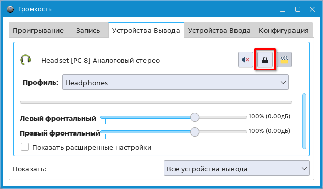 - в секции необходимого устройства нажать [Связать каналы вместе]. Для каждого из доступных каналов будет отображен отдельный ползунок (например, для стереонаушников — два ползунка);