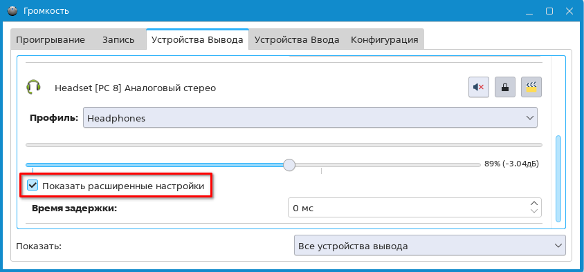 - в секции нужного устройства записи или воспроизведения установить флаг Показать расширенные настройки;