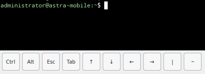 Ввод текста в терминале выполняется с использованием клавиатуры (виртуальной или аппаратной). Если на клавиатуре отсутствуют те или иные клавиши ( <Ctrl> и <Alt> , клавиши управления указателем и другие), можно воспользоваться аналогичными кнопками в окне программы. При нажатии кнопок [Ctrl] и [ Alt] они будут автоматически удерживаться до повторного нажатия, позволяя нажимать комбинации клавиш, например <Ctrl+C>.