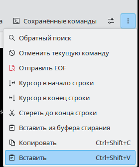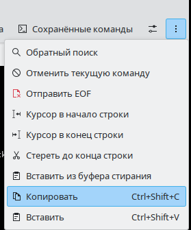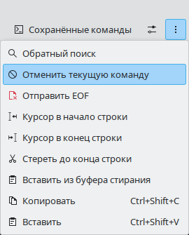 Для выполнения команды необходимо нажать клавишу <Enter>. Чтобы прервать выполняемую команду, необходимо нажать комбинацию клавиш <Ctrl+C> или в меню действий выбрать Отменить текущую команду.