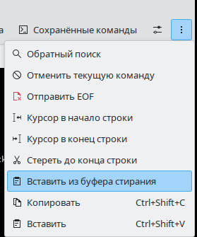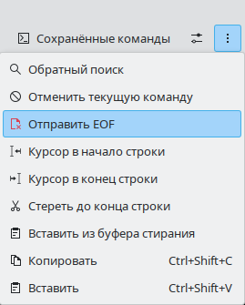 Вместо того чтобы вводить маркер EOF вручную, можно нажать сочетание клавиш <Ctrl+D> или в меню действий выбрать Отправить EOF.