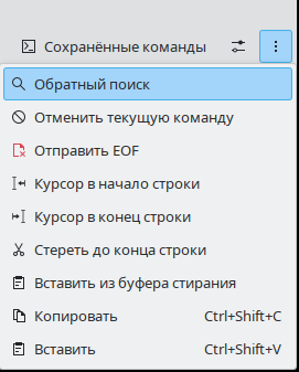 Для ввода сохраненной команды необходимо нажать [Сохраненные команды] и в открывшемся окне выбрать команду.