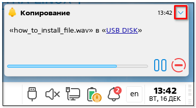 Чтобы показать подробную информацию о ходе выполнения действия в фоновом режиме, необходимо нажать кнопку раскрытия уведомления.