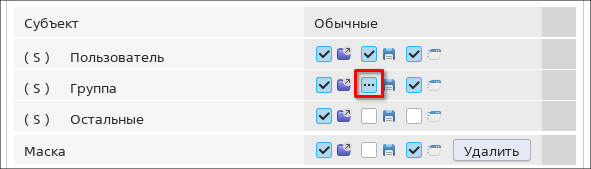 Если право доступа субъекта ограничено маской доступа, то в строке субъекта вместо флага отображается многоточие («...»).