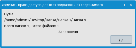 - нажать [Да]. Права доступа к папке и к ее содержимому будут изменены. В появившемся окне будет отображен результат операции;