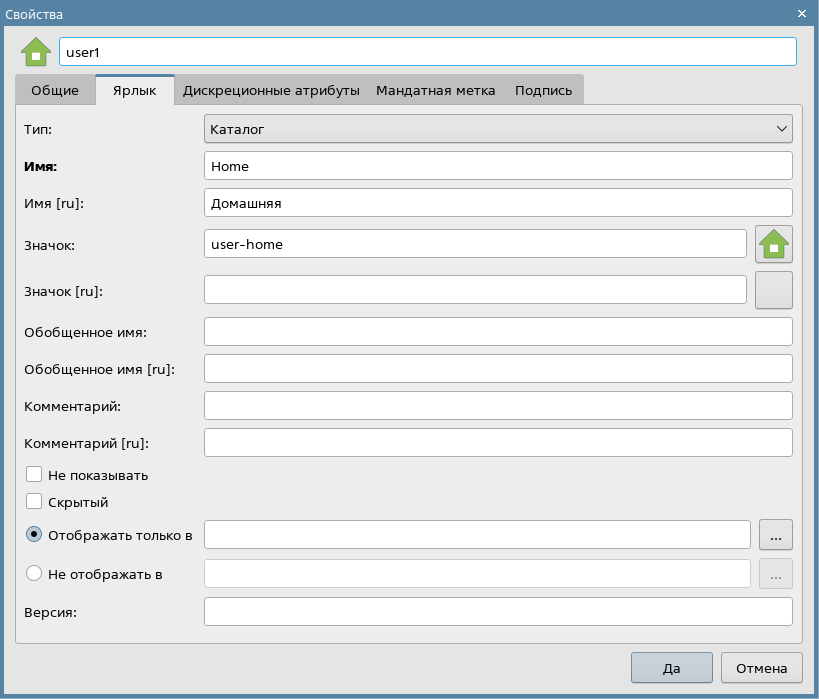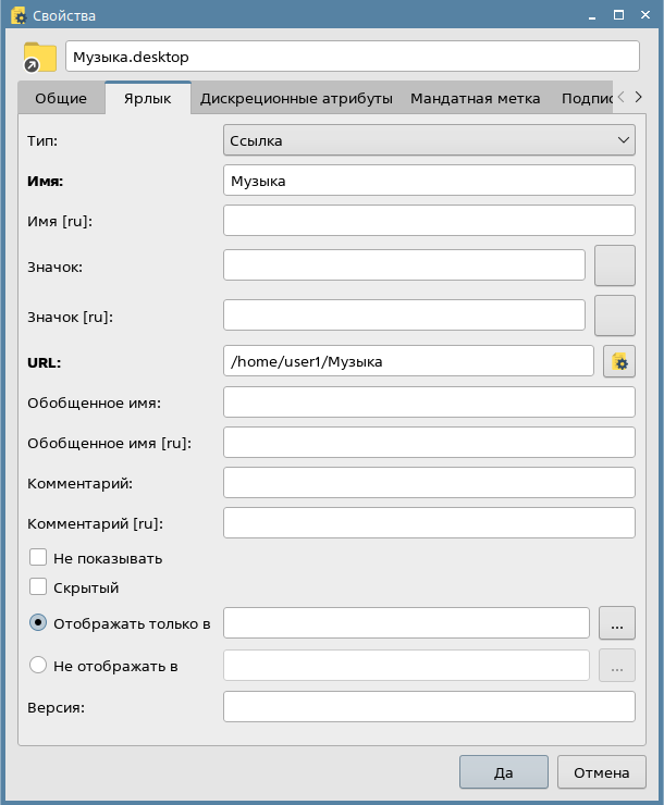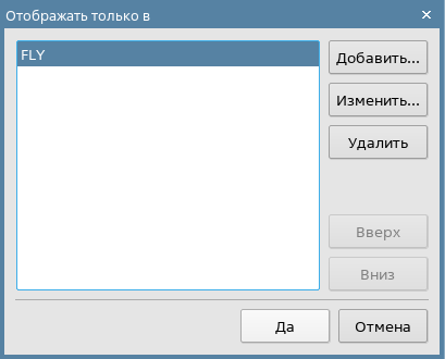 • Не отображать в — ярлык будет отображаться во всех средах рабочего стола, кроме указанных в списке.