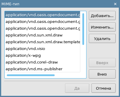 В поле MIME-тип приведен список MIME-типов, ассоциируемых с данной программой.
