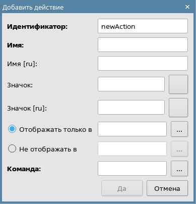 • в поле Идентификатор указать латинскими буквами идентификатор действия;