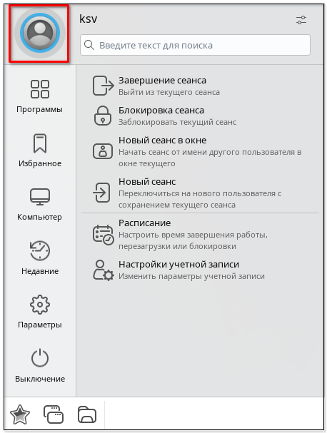 Управление сессиями осуществляется в меню Пуск при нажатии на раздел пользователя: