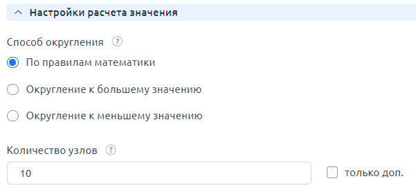 Настройки расчёта значения