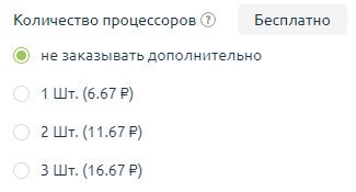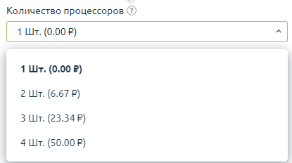 Каждый элемент списка — конкретное количество ресурса, которое складывается из точки специальной цены и значения, включённого в стоимость тарифа. Все доступные элементы списка называются варианты значений. Первый элемент в списке (на скриншоте 512 МиБ за 0 рублей) всегда обозначает количество ресурса, которое включено в стоимость тарифа.