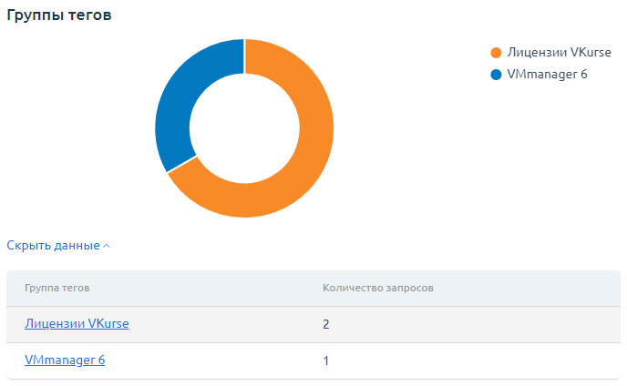 Все теги отображены в таблице, которая содержит информацию о количестве запросов и ответственных отделах для каждого тега.