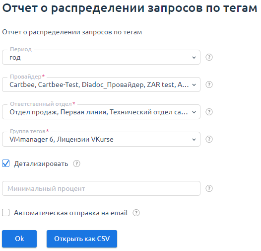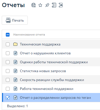 - Перейдите в Провайдер → Отчеты → выберите Отчет о распределении запросов по тегам → кнопка Печать.