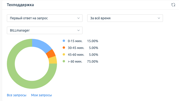 Виджет показывает диаграмму с данными о работе техподдержки для конкретного провайдера:
