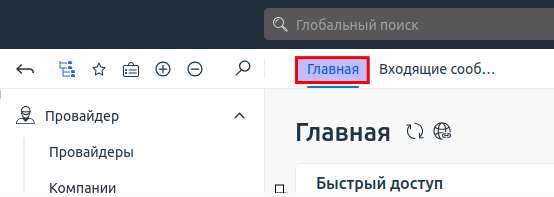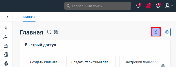 Чтобы открыть дашборд, нажмите кнопку Главная в верхней части экрана.