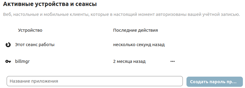 - Авторизуйтесь в интерфейсе платформы и сгенерируйте пароль приложения для доступа к API: в правом верхнем углу откройте Профиль администратора платформы → Личные настройки → Безопасность → Пароли приложений → укажите произвольное название приложения → Создать пароль приложения.