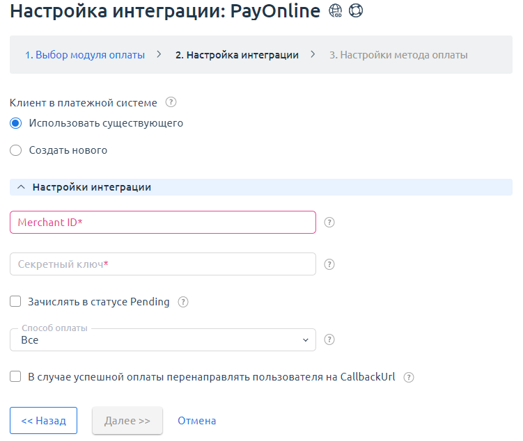 Подробнее см. статьи раздела Подключение методов оплаты.