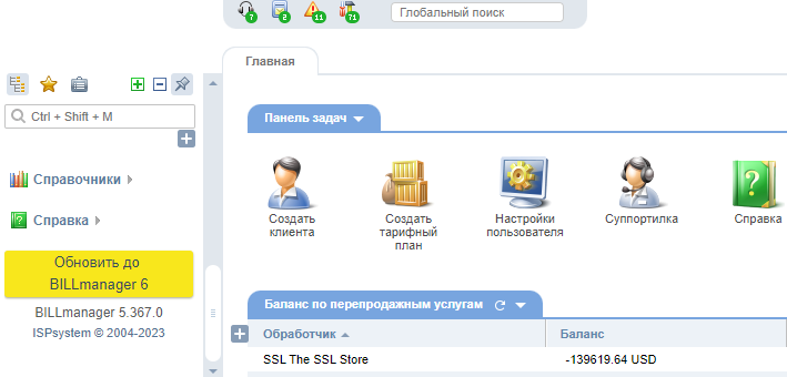 - В левом меню нажмите Обновить до BILLmanager 6.