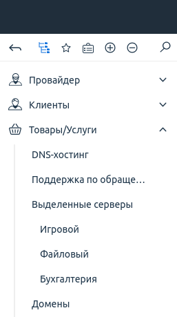Например, для типа продуктов "Внешнее FTP хранилище" выбрана опция Показывать иерархию подтипов в меню клиентов . При этом для подтипа "Быстрый FTP" выбран отдельный уровень вложенности. В меню клиента этот подтип будет показываться на одном уровне с остальными типами продуктов. Если у типа продуктов "Внешнее FTP хранилище" есть другие подтипы, они будут отображаться в подменю.