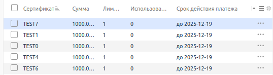Сгенерированные сертификаты будут отображены в таблице с указанием информации по каждому сертификату.